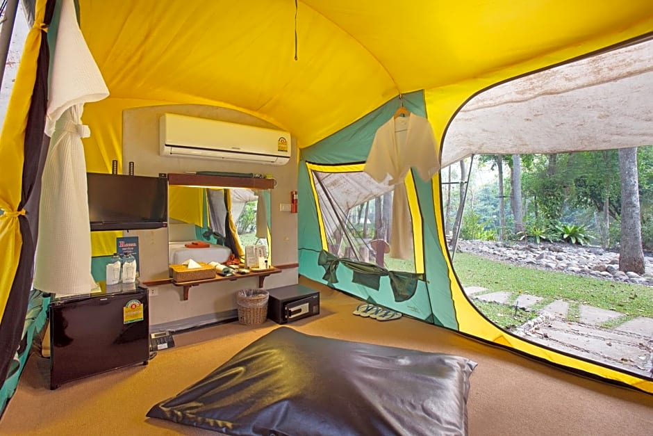 TENT RIVER VIEW is 215 square feet and includes 2 single beds 80-130 width.